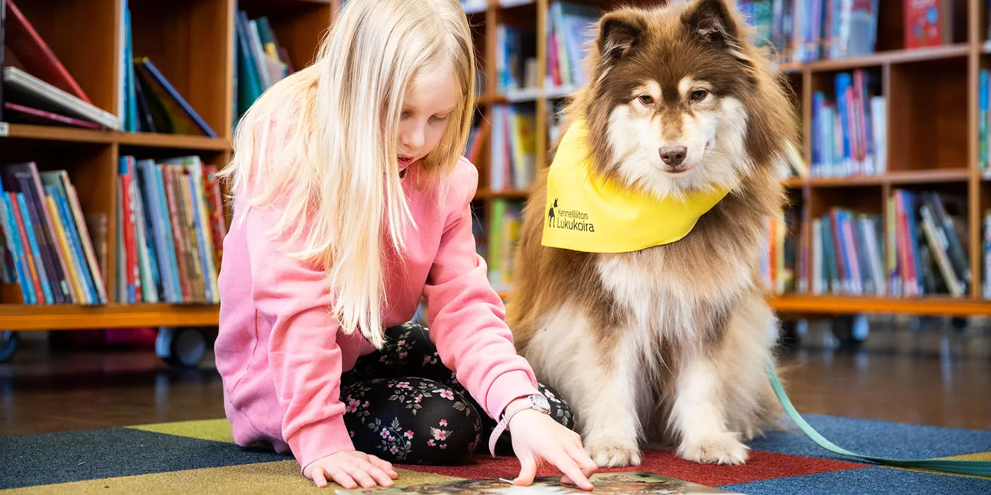 ห้องสมุด Kimito ซึ่งอยู่ทางตะวันตกเฉียงใต้ของฟินแลนด์ “ฮิลมา” สุนัขเพื่อนรักนักอ่านของเด็กๆ กำลังพักเอนกายเพื่อรอทำหน้าที่ผู้ฟังที่ดีในรอบต่อไปให้กับเด็กๆ ชั้นประถม 5 ที่จองเวลาไว้ เพื่อมาอ่านหนังสือกับเจ้าหน้าสี่ขาที่ห้องสมุด