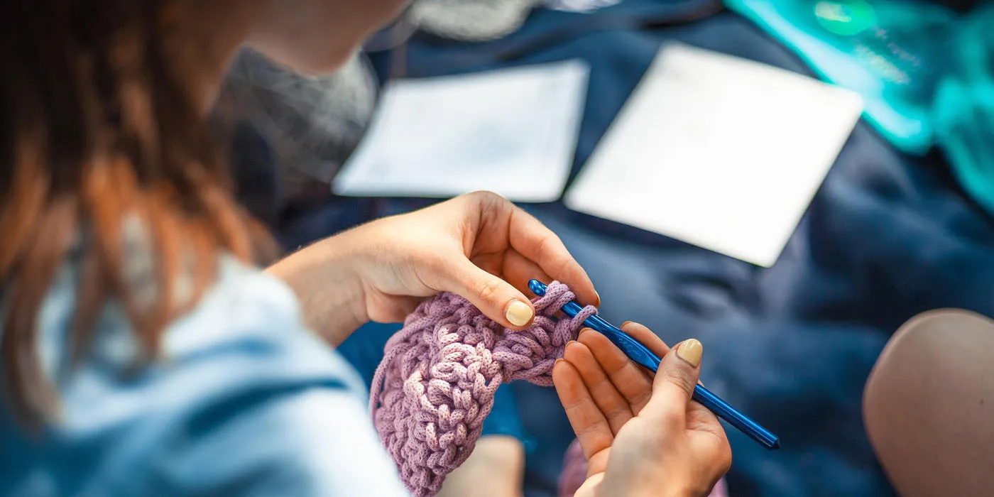ในกิจกรรมกลุ่มถักไหมพรมประจำสัปดาห์ที่ห้องสมุดแห่งหนึ่งในย่านบรูคลิน ผู้หญิงหลากหลายวัยกำลังแลกเปลี่ยนเทคนิคการถักและไอเดียเรื่องสีโดยไม่ใช้หน้าจออุปกรณืดิจิทัลเลย ทุกคนพูดตรงกันว่า การถักไหมพรมเป็นวิธีผ่อนคลายที่ดี